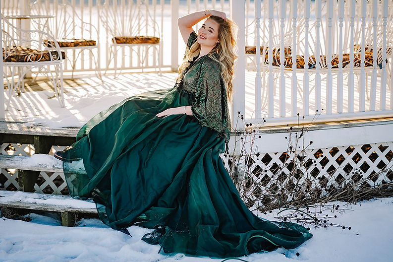 Two piece emerald dress--flowy and fun to dance in for movement pictures. Strapless bra required. Fits most S-L